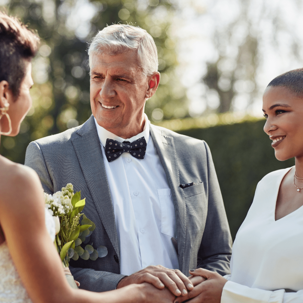 At Last Minute Wedding Officiant, you’ll have access to a variety of notaries, bilingual wedding officiants and ordained ministers, who can perform different services depending on what you need.